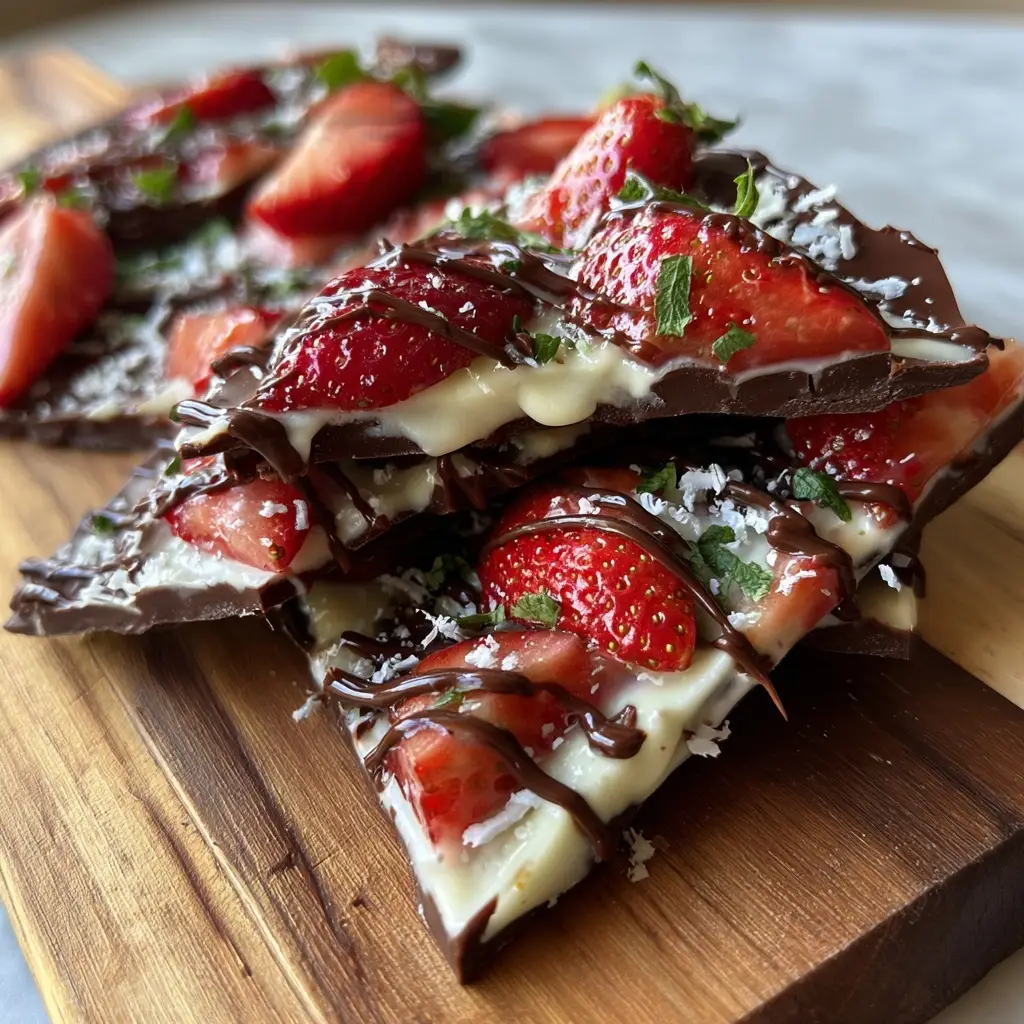 Indulge in the delightful Chocolate Strawberry Yogurt Bark, combining creamy yogurt, rich chocolate, and fresh strawberries for a guilt-free treat. Perfect for warm afternoons or a sweet snack!